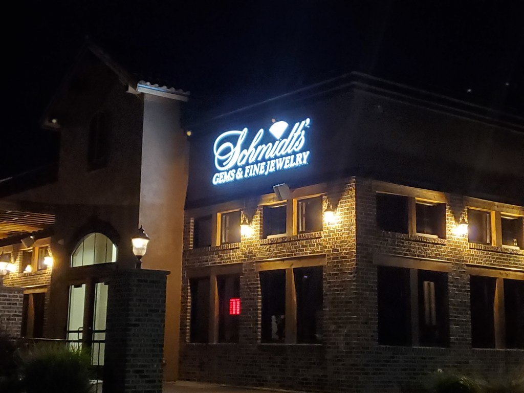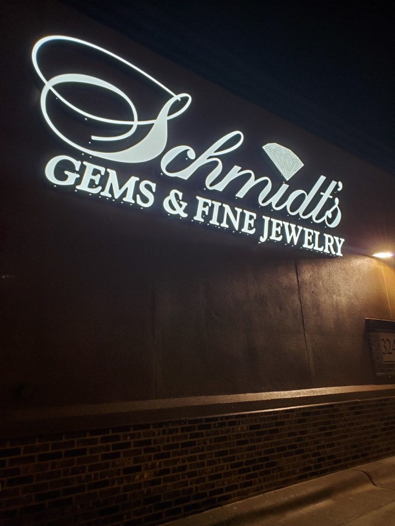 We provided and installed the signage at the new location for Schmidt’s Gems and Fine Jewelry on South 42nd Street. These LED lit letters are sharp and very bright at night!