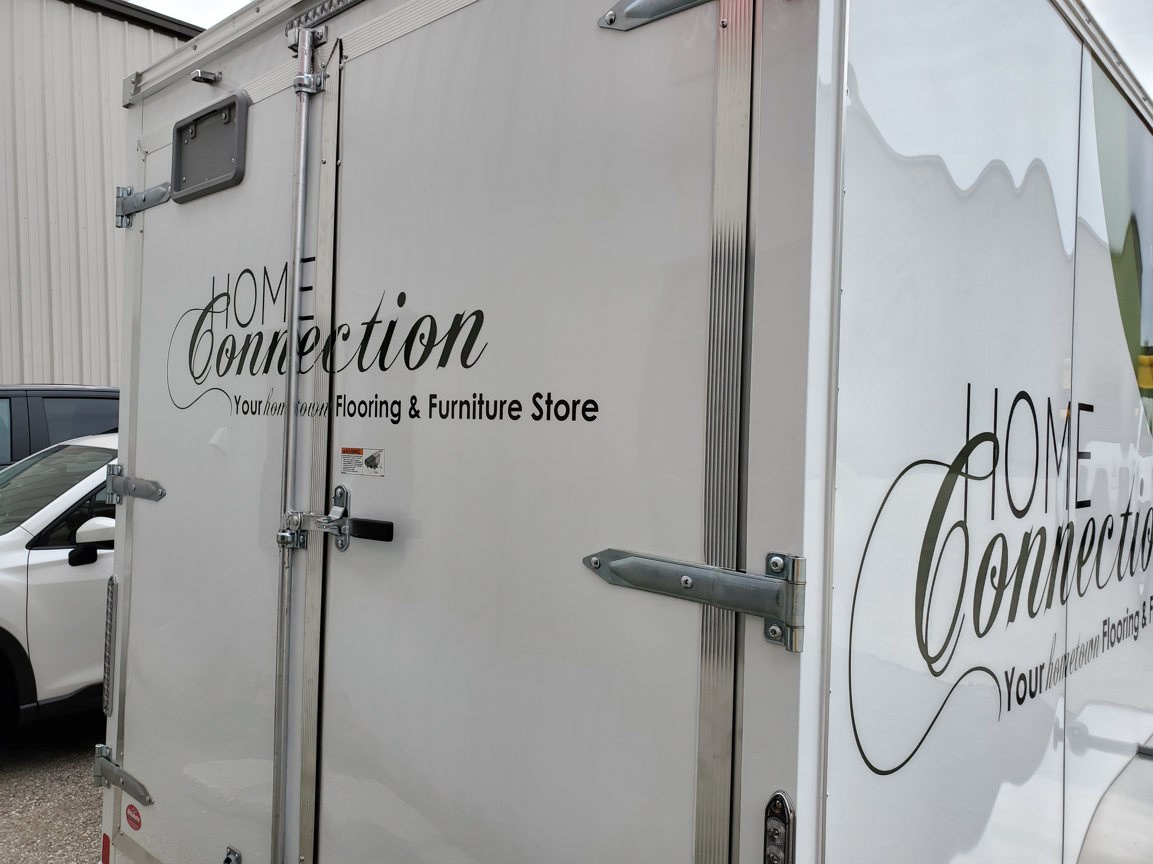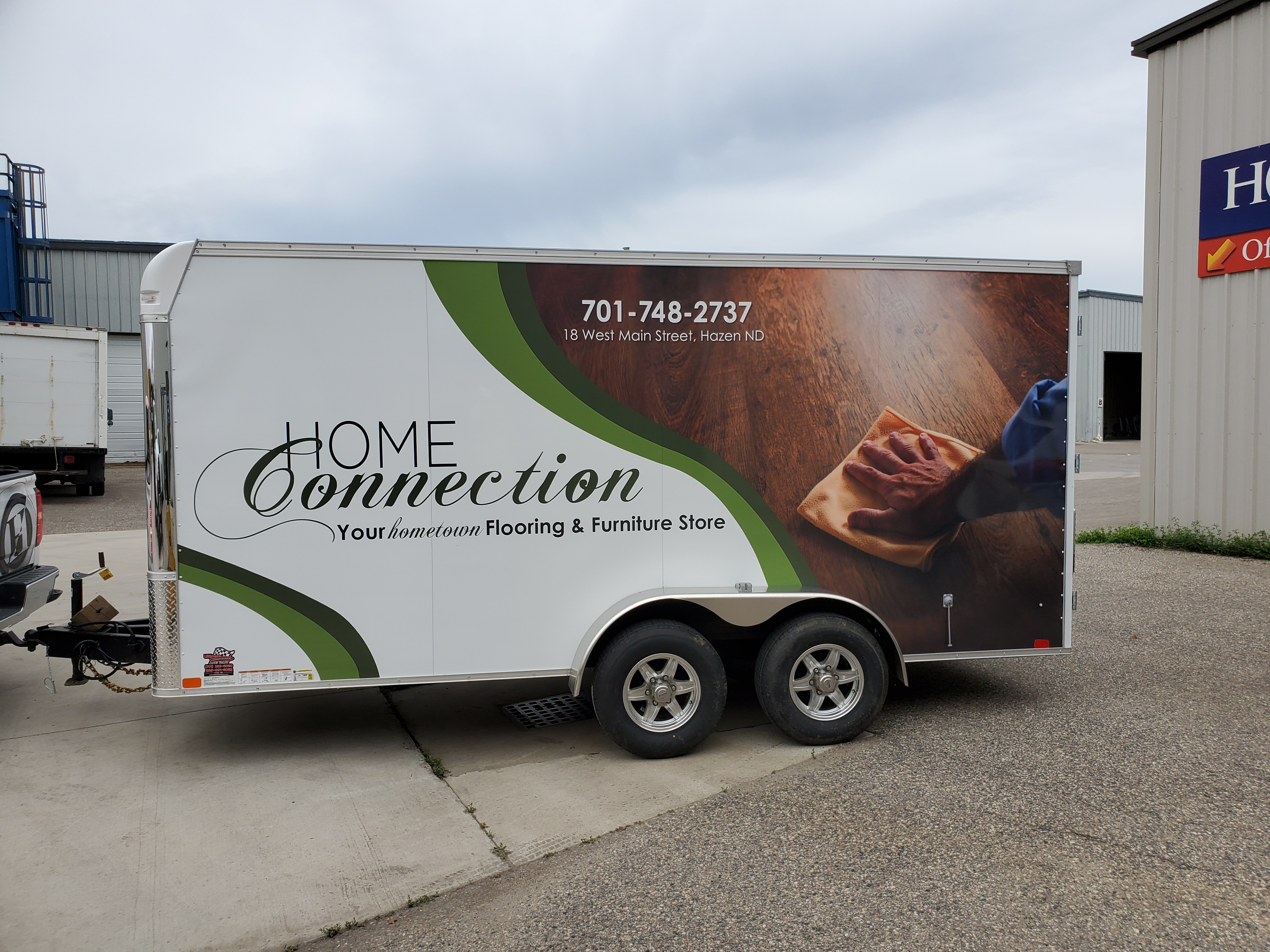 This trailer is for Home Connection, a furniture store in Hazen, North Dakota. The printed vinyl looks outstanding, and the whole trailer came together very nicely!